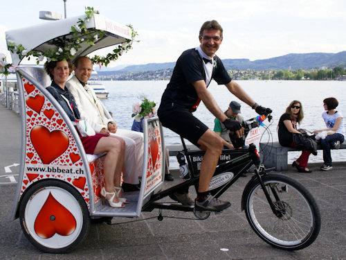 Heute Abend war ich das erste Mal für eine Hochzeitsfahrt gebucht. Ich holte das Hochzeitspaar am Schiffsteg beim Bürkliplatz ab und fuhr es dann zum Restaurant in der Nähe des Albisriederplatzes, wo die Hochzeitsfeier stattfand. Die Fahrgäste fanden die Sache eine tolle Überraschung und freuten sich über die gemütliche und entspannte Fahrt durch die Stadt.