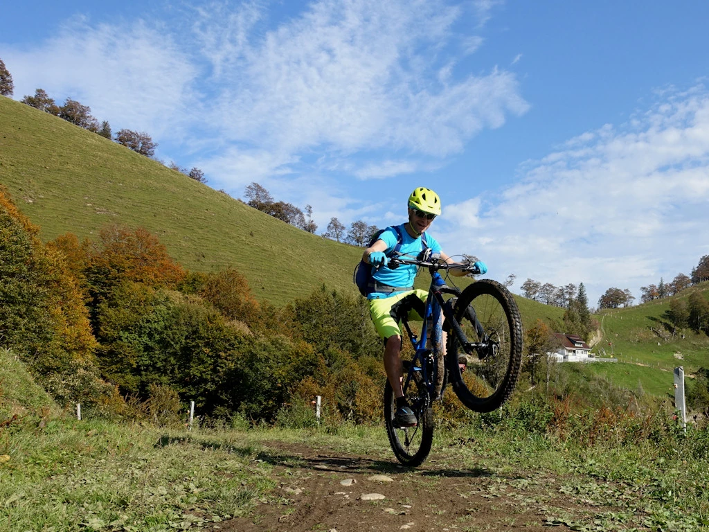 Sobald der Aphalt endet und der Untergrund schlechter wird, zeigen sich dann deutlich die Vorteile. Die Reifen werden nur mit wenig Luftdruck gefahren und überrollen deshalb kleinere Steine ohne dass man diese bemerkt. Berghoch ist die Traktion genial und selbst über feuchte Wurzeln rutscht der Reifen kaum. Offroad ist das Bike dann wirklich in seinem Element.
