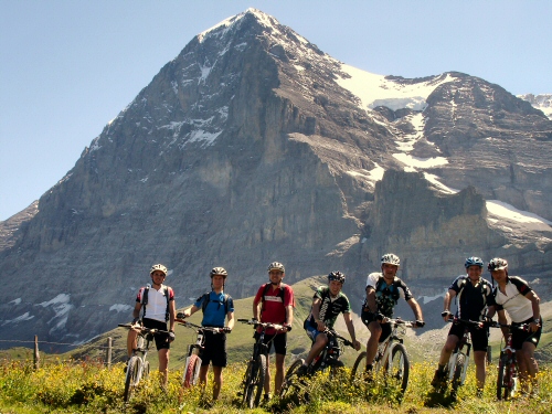 Unsere Bikegruppe auf der kleinen Scheidegg (2'061 m.ü.M), am Fusse der Eiger Nordwand (3'970 m.ü.M.).