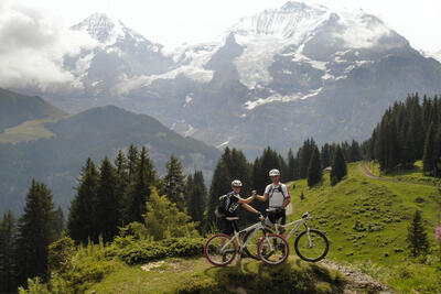 Gegen 10:00 Uhr haben wir im Hotel ausgecheckt, die Bikes und alles Gepäck im Auto verstaut und sind bereit für die kurze Autofahrt nach Lauterbrunnen. Dort parkieren wir im zentralen Parkhaus, laden die Fahrräder wieder aus und machen uns startklar.
