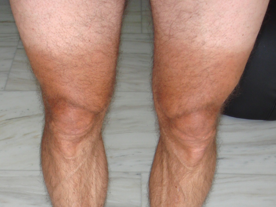 Radfahrer erkennt man an den weissen Händen. Sonnengebräunte Arme, doch wegen der Handschuhe stets weisse Hände. Oder eben, den zweifarbigen Oberschenkeln. Unten braun, oben weiss. Und genau deshalb musste ich mir eine neue Badehose im Bermudalook kaufen. In einer kurzen, engen Badehose würde das ziemlich witzig aussehen ![]()