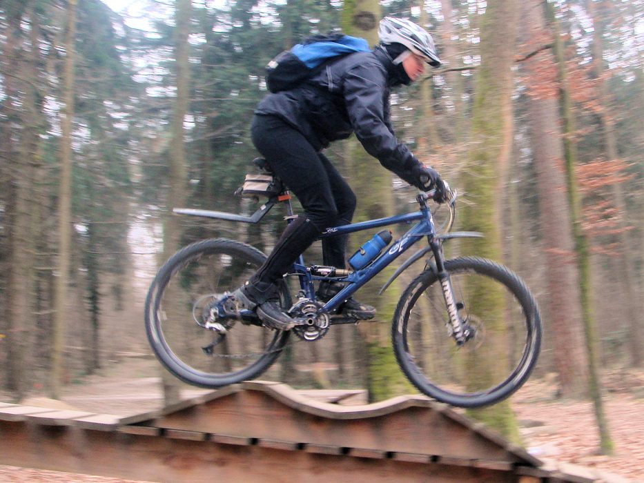 Wir wollten ein paar Singletrails in den nahen Wälder ausprobieren, denn dazu ist der laublose Winter, mit teils gefrorenem Boden gerade richtig. In dieser Jahreszeit entdeckt man immer wieder kleine Wege und man hat auch mal die Zeit um etwas zu schieben und auszuprobieren. *lächel*... zu schieben. Genau. Schon bald standen wir irgendwo, mitten im Wald, vor einer kleinen Schlucht mit Bach. Es sind keine Spuren mehr zu sehen... wir müssen/wollen auf die andere Seite. Also absteigen, Bike irgendwie den Abhang runter tragen, den Bach an einer schmalen Stelle überqueren und auf der Gegenseite den Hang wieder hochkraxeln... überall umgestürzte Bäume und Gestrüpp... quasi ein klein wenig "Adventure-Feeling" direkt vor der Haustüre. ![]()
