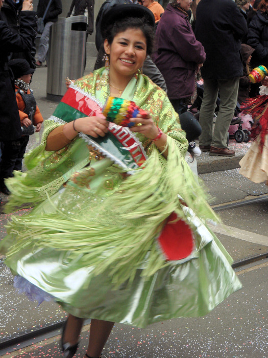 . So verwunderte es gar nicht wirklich, dass bestimmt die Hälfte der Gruppen am heutigen Umzug von auswärts kam. Hexengruppen aus Süddeutschland, Folkloregruppen aus Bolivien und Peru. ZüriCarneval ist irgendwie Multikulti-Folklore für jedermann... Wie auch immer. Die Stimmung war gut, viel Konfetti flog durch die Luft und gerade die fremdländischen Gruppen versprühten viel Lebensfreude. Ein zufriedener Anlass mit vielen freundlichen Gesichtern. Hier ein paar Eindrücke: