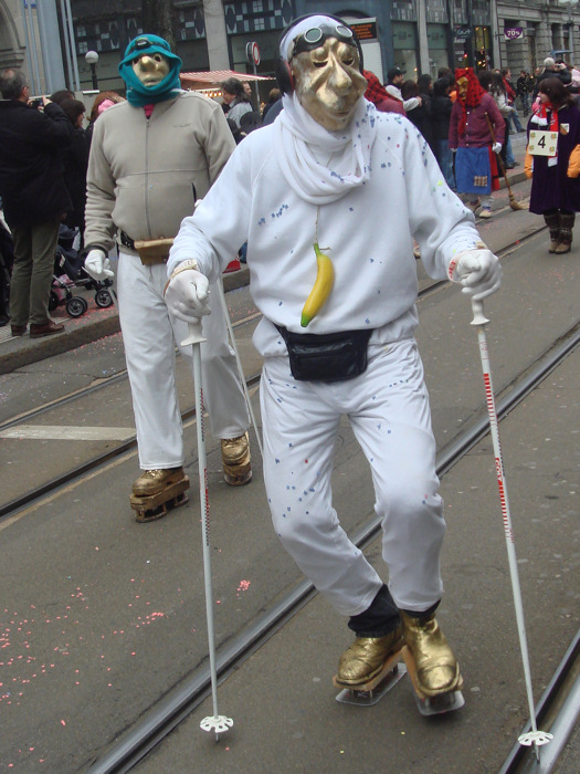 Heute Mittag besuchten wir den Umzug des ZüriCarnevals in der Innenstadt. Na ja, von Fasnachtsumzügen verstehen wir Zürcher wirklich nichts. Das hat bei uns einfach keine Tradition. Nicht so wie in Luzern oder Basel. Zürcher feiern Ihre Fasnacht am Sechseläuten