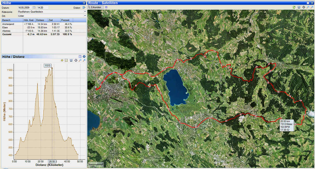 Die Tour heute war anstrengend aber schön. Wenn wir für ein nächstes Mal die heftgsten Schiebepassagen umfahren können und wirklich noch ganz auf den Bachtel hochfahren, dann ist das sogar eine Spitzentour. Der Tacho sagt: 48 km., 3:18 Std., 1'120 Hm