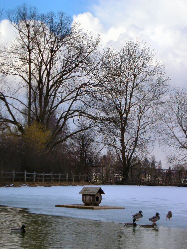 Schon dachte ich daran, das Notebook zu zücken und mir die Tagesnews zuzuführen da entdeckte ich, dass um 12 Uhr mittags das erste Formel 1 Rennen der Saison 2006 startet. Cool. Draussen schneit es ganz leicht - also drin bleiben, Glotze anwerfen und Autos in der Wüste rumkurven sehen. Die neuen Regeln haben zumindest dem ersten Rennen gut getan. Endlich sieht man wieder einmal ein Überholmanöver ausserhalb der Boxen... Als dieses Ablenkungsprogramm dann um war, wollte ich noch einen kurzen Moment an die frische Luft und so entschied ich, mit einem kurzen Spaziergang an einen nahegelegenen Weiher das übrig gebliebene Brot entengerecht zu entsorgen... Wie bestellt zeigte sich kurz die Sonne, was den Minustemperaturen etwas den Schrecken nahm. Und auf den letzten Metern des Rückwegs setzte der leichte Schneefall wieder ein... perfekt. Nun noch etwas bloggen und schon bald ans Abendessen denken.... was für ein Sonntag! Erholung pur.