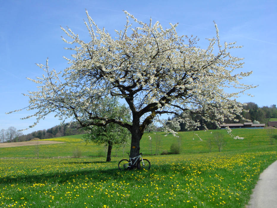 Ich überlege wirklich nur sehr kurz, ob ich auf direktem Weg nach Hause fahren soll, oder ob ich jetzt, nochmals gestärkt, noch ein paar Kilometer anhängen soll. Die Hundertergrenze wäre vielleicht noch ein mögliches Ziel... Nein. Heute nicht. Ich habe genug. Genug Anstrengung, genug Sonne, genug Hitze... ich will nach Hause und mich auf dem Gartensitzplatz etwas erholen. Als ich dann vor der Garage das GPS durchklicke bin ich zufrieden. 88 km., 6:00 Std., 2'040 Hm. Das war wirklich sehr schön. Wie ein vorweggenommener Sommertag. Wenn die Geschichte mit der Verpflegung etwas besser geklappt hätte, hätte ich das Tourende wohl etwas mehr geniessen können. Doch was soll's? Das wäre Jammern auf höchstem Niveau und das muss wirklich nicht sein. Es war ein perfekter Biketag und die heutige Tour hat sehr gut dazu gepasst. Danke!