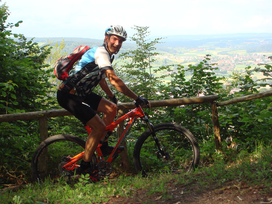 Es war um 26° Grad warm, doch die Luft war durch die verschiedenen Regenschauer deutlich sauberer und leichter zu atmen als in den letzten Tagen. Der Untergrund war noch leicht feucht, Sommer dampfte aus den Wäldern. Sehr schön. Ich fuhr hoch zum Irchelturm und machte nebst dem Standardfoto noch ein weiteres Bild unterwegs. Es waren keine Leute unterwegs und somit war es perfekt um etwas abzuschalten und durchzulüften, sich selbst und seinen Körper zu spüren. Das GPS sagt: 28 km., 1:38 Std., 570 Hm