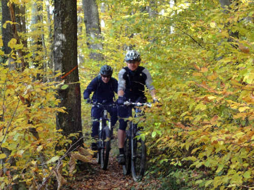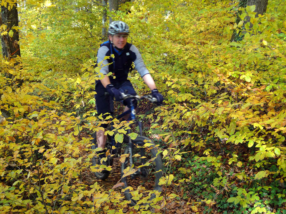 Die bekannten Singletrails runter nach Buchs sind heute trocken und super schön zu fahren. Überall liegt Laub, die Sonne scheint in die bunten Bäume. Grün, gelb, orange, braun, noch etwas rot, das sind die dominierenden Farben. Sehr schön! Wir machen nochmals einen Fotohalt um die tolle Stimmung festzuhalten, bevor wir dann eher gemütlich nach Hause rollten.