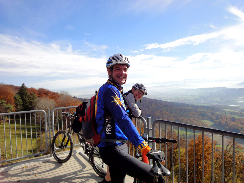 Die Idee war heute, auf die Lägern-Hochwacht zu fahren um bei möglichem Föhn ein tolles Panorama sehen zu können. Damit die Anfahrt zu den Lägern nicht zu flach und langweilig ausfällt entscheiden wir uns, mit Stadlerberg und Schöfflisdorfer-Höhe, noch zwei Hügel in die Strecke einzubauen. Das Wetter ist gut, wir haben Zeit, alles perfekt! Nicht ganz perfekt, denn als wir oben auf der Aussichtsplattform der Lägern ankommen, ist die Sicht nicht überragend. Dunst und dünne Schleierwolken nehmen die Sicht auf die Berge. Das tut unserer guten Laune jedoch keinen Abbruch.
