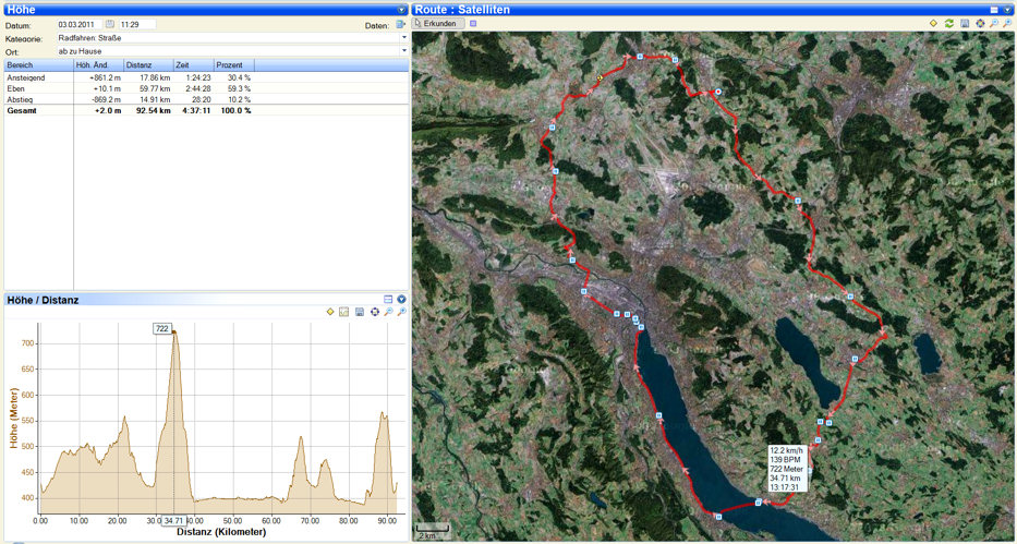 Auf dem Rückweg wurde ich zusehens müde und da dachte ich an die 107 Kilometer vom 3. April. Dieses Granfondo-Velorennen, wo ich mich angemeldet habe. 107 Kilometer sind viel... das wird richtig anstrengend werden. Vor allem dürfte es schwierig sein, die Kräfte richtig einzuteilen und nicht am Anfang zu schnell loszufahren. Ich muss schauen, dass ich im März noch eine lange Trainingsfahrt von +107 Kilometer fahren kann. Heute waren es etwas mehr als 90 und zum Schluss war ich doch ziemlich platt. Da brauche ich noch etwas Training. Das GPS sagt: 92 km., 4:37 Std., 860 Hm.