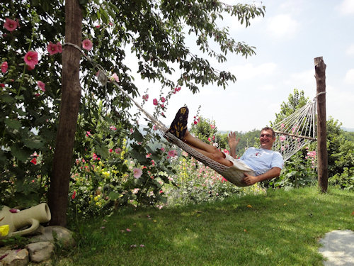 So technologieverseuchte Menschen wie ich hätten natürlich noch gerne einen schnellen Internetzugang, doch den gibt es nicht. Man soll sich ja erholen und ausspannen. So nahm ich mir einfach die Zeit um die Beiträge von gestern und heute zu schreiben, die ich bei nächster Gelegenheit in meinen Blog stellen werde. Ich geniesse einen Tag ohne Velosattel, mit einem Buch in der Hängematte oder für ein erfrischendes Bad im schönen Pool. Herrlich! La vita e bella! Das GPS sagt nichts!