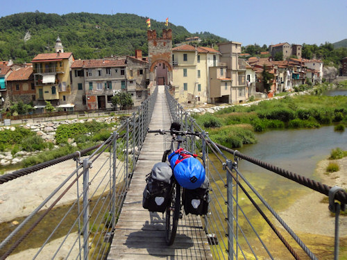 Heute wollte ich bis zum Colle di Cadibona fahren. Dies ist der geografische Startpunkt des Apennins und somit der eigentliche Beginn meiner Sommerreise entlang des Apennins durch Italien. Ich fuhr bewusst gemütlich und machte regelmässige Pausen. Das Wetter war anfangs zwar noch etwas bewölkt, doch schon an die 25° Grad und somit ideal um Rad zu fahren.