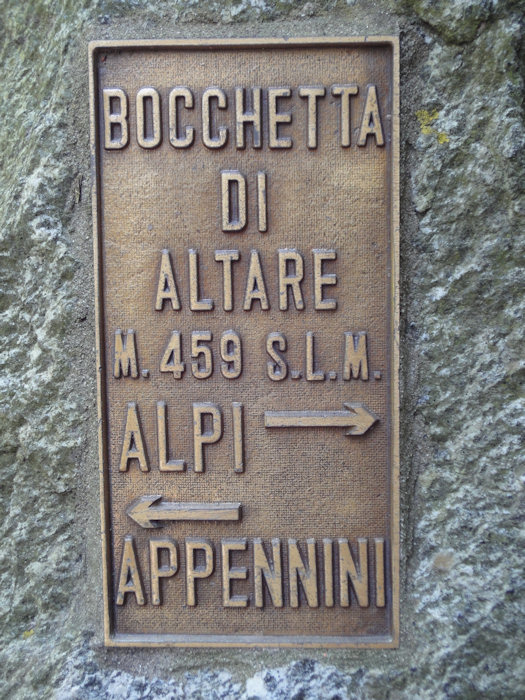 Ich machte ein paar Fotos bei dem Stein, der die Trennung zwischen Alpen und Apennin markiert und überlegte mir, wie ich nun weiterfahren soll. Einen kurzen Moment dachte ich daran, nach Savona runter zu fahren und der Mittelmeerküste entlang nach Finale Ligure um im Hotel Rosita zu übernachten. Noch so gerne erinnere ich mich an das ausgezeichnete Hotel, die netten Gastgeber und den Internetanschluss (alles, was mein Herz begehrt). Doch Finale Ligure liegt 180° in der falschen Richtung und war somit eher ein schöner Gedanke als eine wirkliche Option.