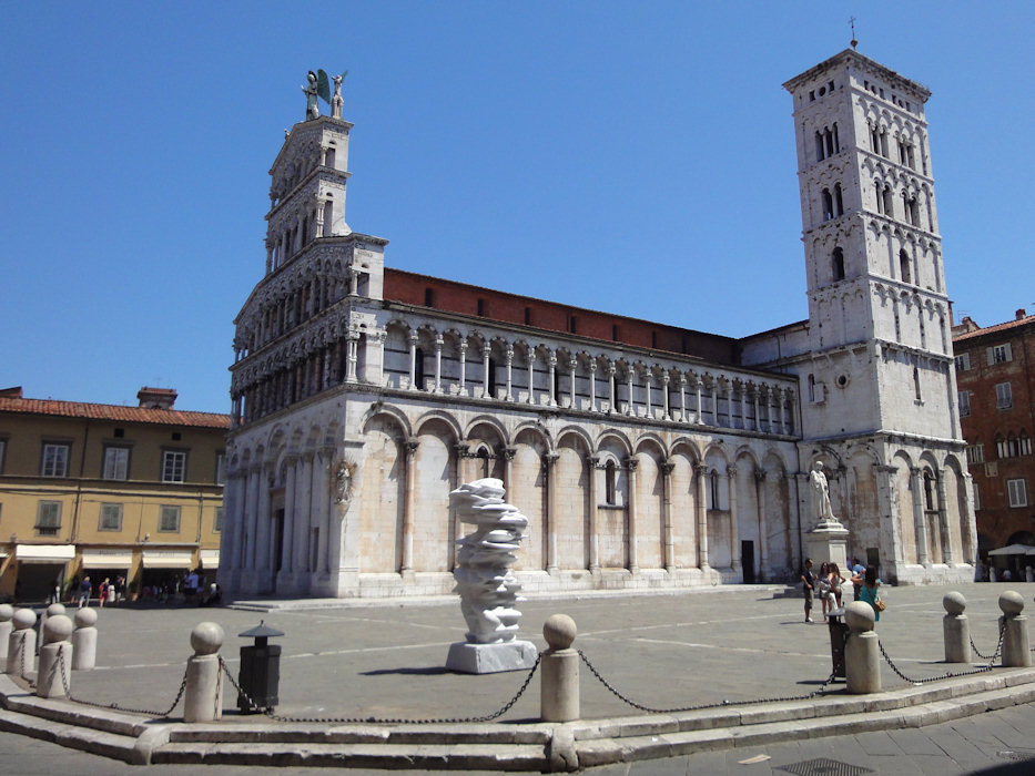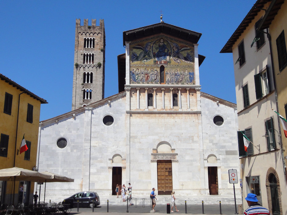 In Lucca machte ich auf dem alten Stadtwall zuerst eine Rundfahrt um den historischen Kern, bevor ich mich ins Touristengetümmel stürzte. Interessant fand ich, dass ich mich nach zehn Jahren noch an fast jeden Platz und an jedes Lokal erinnerte, wo ich mit Karin war. In der Innenstadt war es etwa 33° Grad und irgendwie hatte ich gar keine Lust um schon ein Hotel zu suchen. Ich entschied mich, eine Portion Pasta mit Salat zu essen und nachmittags noch etwas weiterzufahren. Dazu schaute ich kurz auf die Karte.