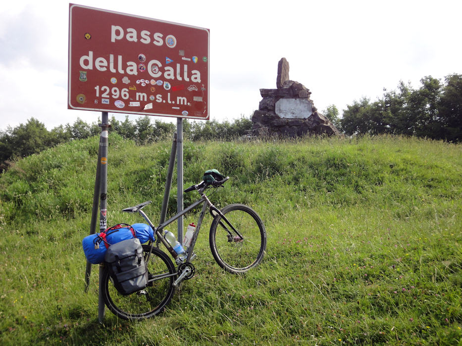 Dann fahre ich lieber hoch nach Campigna (1'100m.ü.m.), von da über den Passo della Calla und dann runter nach Staio. Es würden weitere Dörfer folgen und spätestens in Poppi oder Bibbiena sollte ich fündig werden. Der Aufstieg bis zur Passhöhe auf etwas über 1'290 Höhenmeter war dann lang und anstrengend. In der winzigen Bar am höchsten Punkt ergatterte ich noch eine Büchse Coca Cola, bevor die Türen und Fenster verschlossen wurden. Mittlerweile war es halb sechs Uhr abends.