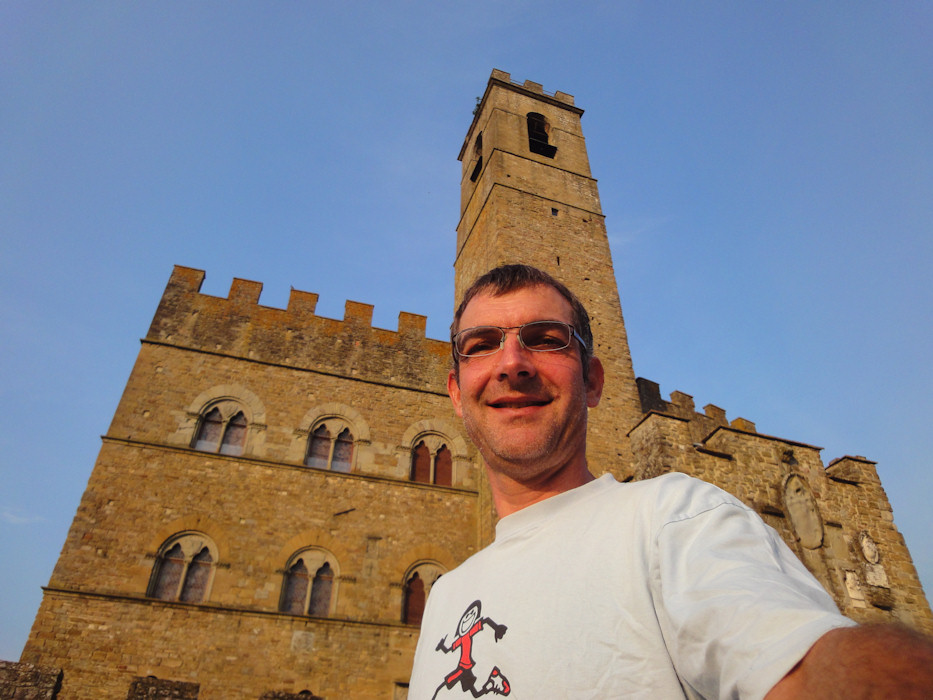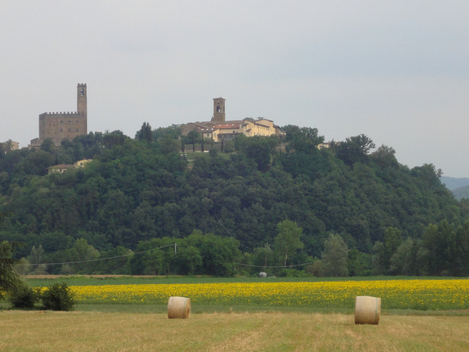Für die Abfahrt wechselte ich das Veloshirt und zog noch eine leichte Jacke über. So machte es dann unglaublich Spass etwa 900 Höhenmeter und geschätzte 100 Kurven runter zu fahren. In Stanio war dann nichts los, im Pratovecchio hätte es schon Hotels gehabt, doch ich wollte etwas mehr Leben, nach diesem einsamen Tag. Die Strasse führte weiterhin ohne jede Gegensteigung talwärts was ich natürlich super fand. Bald schon sah ich Poppi, mit seinem eindrücklichen Castello auf einem kleinen Hügel. Ja! Das ist es, da will ich hin.