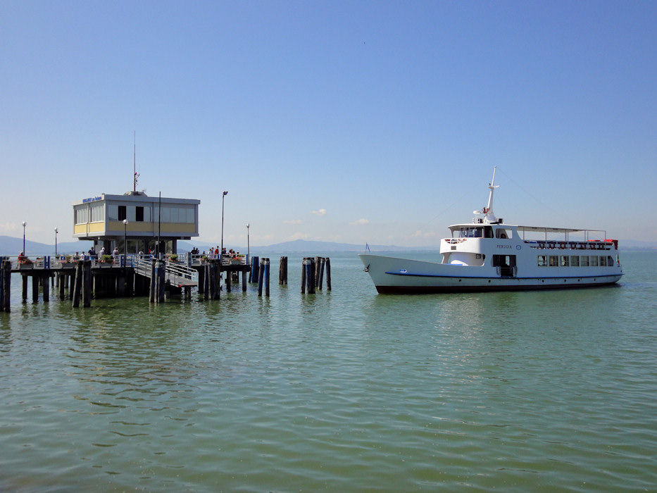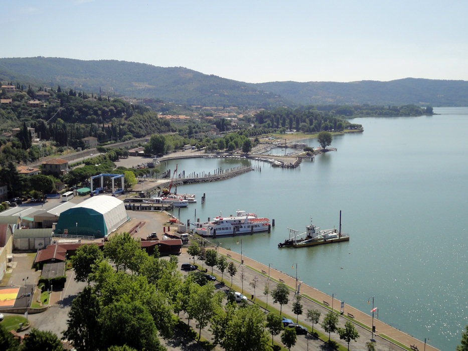 Am Morgen nach dem Frühstück wusch ich zuerst mal meine dreckigen Bikekleider, bevor ich etwas durch Passignano sul Trasimeno spazierte. Es war blauer Himmel und die Sonne knallte schon kräftig runter. Es würde etwa 33° Grad warm werden. Ich besuchte das zuerst das Castello und genoss von da die herrliche Aussicht auf den See. Danach besichtigte ich noch den dreieckigen Glockenturm (Torre Triangolare) und schlenderte etwas durch die Altstadt.