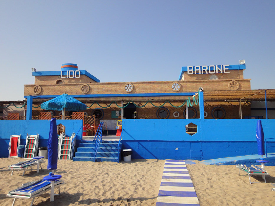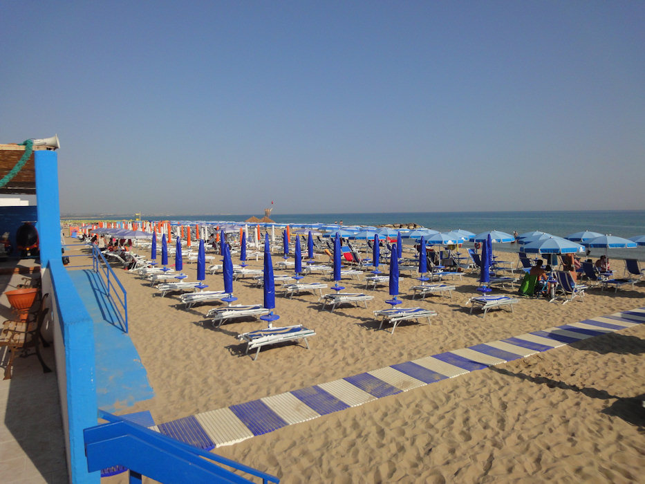 Es dauerte wohl keine halbe Stunde, bis ich die 200 Höhenmeter bis zur adriatischen Küste runtergerollt bin und mir da in einem Strandbad bereits den nächsten Cappuccino genehmigte. Es war ein Traumtag, nicht die kleinste Wolke am Himmel und schon um neun Uhr über 30° Grad warm.