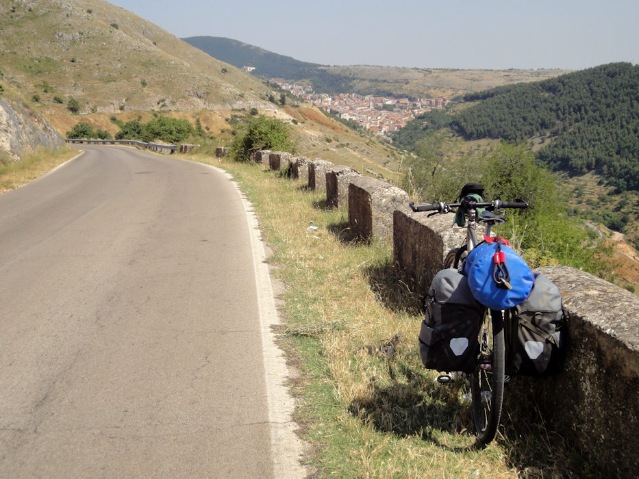Ich denke mir, dass ich noch bis ins nächste Dorf fahre, mir da ein kleines Hotel suche, nett dusche und dann den Mittag verschlafe, bis ich abends auch mal ins Meer baden gehe. Ja, das dachte ich mir. Blöd nur, dass meine geplante Strecke schon vor dem nächsten Dorf ins Landesinnere abzweigt. Ich kann die erste Hügelkette des Parco Nazionale del Gargano schon sehen und erinnere mich, dass dies eines der grössten Eichenwaldgebiete Europas sein soll. Eichenwald klingt verlockend nach Schatten und eigentlich wollte ich heute ja schon etwas mehr als nur knappe 50 Kilometer Velo fahren.