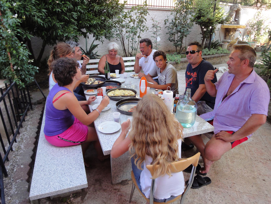 Am späteren Nachmittag kam ich dann nach Venosa, wo ich wieder meine Freunde traf. Zur Erklärung: Die Eltern meiner Freunde kommen ursprünglich aus Venosa und besitzen hier ein Haus mit grossem Grundstück. Im Feriendorf African Beach, wo ich vor zwei Tagen war, haben sie eine Wohnung, wo sie jeweils Badeferien am Meer machen. Die Mutter wohnt nun, nach fast fünfzig Jahren in der Schweiz wieder hier in Venosa und die Kinder, die teilweise in der Schweiz und teilweise in Italien leben, besuchen sie oft in den Ferien. In Italien bestehen Familien jedoch aus weit mehr Leuten. Brüder und Schwestern, Onkel und Tanten, Cousins und Cousinen und so sind immer schnell viele Leute zusammen.