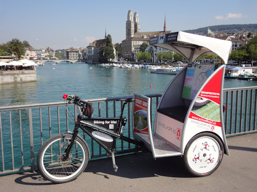 Heute fotografierte ich an der fast gleichen Stelle meine Rikscha, mit der ich in den letzten Monaten wohl schon hunderte von Malen über die Quaibrücke gefahren bin...