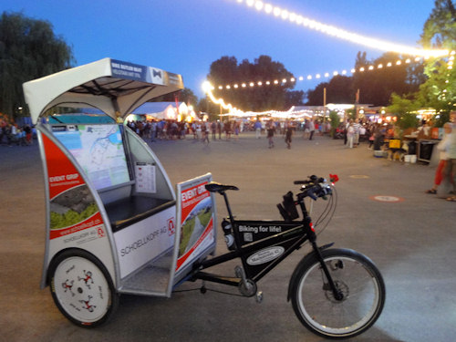 Derzeit sind Fahrten ans Theater Spektakel auf der Landiwiese ziemlich der Renner. Wäre ich abends nicht schon müde, könnte man vermutlich bis Mitternacht immer wieder Leute nach Hause (oder zum Standort ihres Autos) fahren. Mir gefällt die Ambiance am Theater Spektakel übrigens auch ausgezeichnet.
