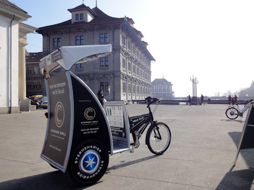 Bei mir ist das mittlerweile anders. Nicht der Wochentag bestimmt meinen Arbeitsrhythmus sondern das Wetter. Heute lichtete sich gegen Mittag der Hochnebel und die Sonne begann durchzudrücken, also begann ich um 12:30 Uhr mit meinem Rikschatag. Dann wurde ich mit dem "normalen" Alltag konfrontiert. An einem Montag gibt es (fast) keine Einheimischen, die durch die Strassen flanieren und Lust auf eine Runde Rikschafahren haben. Anfang März hat es auch nur wenige Touristen in der Stadt und deshalb gibt es an sonnigen Montagen auch mal leere Plätze und Strassen.