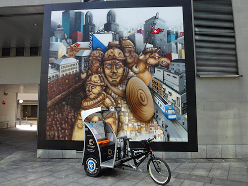 Ein grau trüber Tag, knappe 5 Grad über Null, Dienstag nach Ostern... Heute war so gut wie nichts los. Deshalb kreuzte ich die Stadt etwas auf und fuhr einfach etwas Rad... Am UBS-Hauptsitz sah ich dann dieses gesprayte Wandbild. Es soll das UBS Sponsoring für die Ausstellung der chinesischen Tonkrieger in Bern unterstützen.