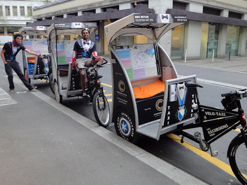 Heute abend waren zum ersten Mal alle drei Rikschas im Einsatz. Für eine Geburtstagsfahrt fuhren wir 6 lustige Frauen durch die Stadt und hatten dabei jede Menge Spass. Obwohl ich ja eigentlich nur eine Bewilligung für den Einsatz von zwei Rikschas habe, mache ich mir über den gelegentlichen Einsatz von allen Drei keine wirklichen Sorgen. Das sind seltene Momente, wo ich wirklich Buchungen für drei Rikschas habe und da wird die Polizei (falls sie uns auch wirklich sehen würde) wohl ein Auge zudrücken.