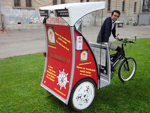 Ebenfalls sehr gut passt, dass Arjun vorwiegend abends und in der Nacht fährt. Das ist genau dann, wenn mögliche Pub-Kunden unterwegs sind. Zusätzlich zur Werbung kann Arjun den Fahrgästen 5 Franken Gutscheine abgeben um die Leute zu motivieren, in einem dieser Pubs Halt zu machen und etwas zu trinken. In meinen Augen stimmt das Konzept. Ich bin gespannt, welche Erfahrungen Arjun macht.