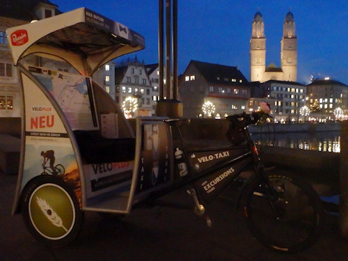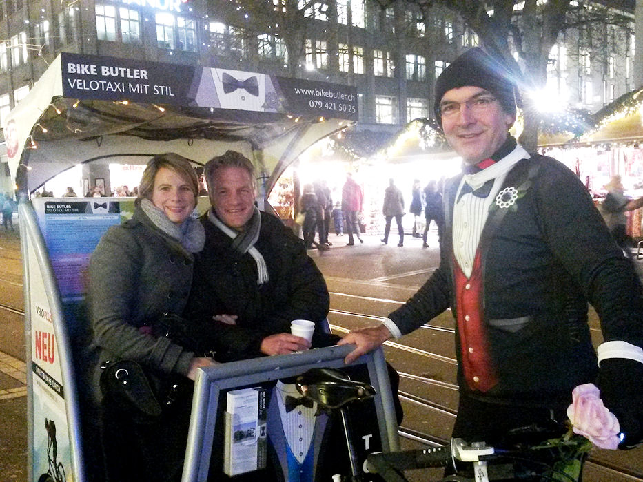 Abends war ich dann für eine Weihnachtsbeleuchtung-Rundfahrt gebucht. Interessant dabei war, dass ich von jemandem gebucht wurde, den ich bisher nur aus einem Mountainbike-Internetforum kannte. Seine Frau hatte heute Geburtstag und vor dem Nachtessen wollten die zwei die Weihnachtsbeleuchtung in Zürich ansehen und sich bei einem Glühweinhalt in Festtagsstimmung bringen. Das hat dann auch wunderbar geklappt. Beide hatten an der Fahrt viel Freude und wir haben uns auch menschlich wirklich gut verstanden. So ist es immer am Schönsten. Etwas plakativ ausgedrückt kann man sagen: Man trifft sich als Fremde und verabschiedet sich als Freunde.