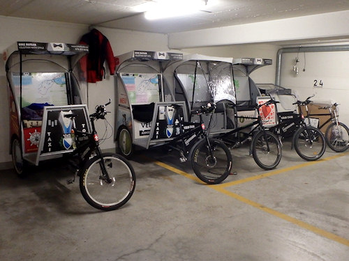 Heute Nachmittag traf ich mich mit Arjun und wir verschoben den Bike Butler Fuhrpark in die neue Garage. Es ist das erste Mal, dass man fünf Rikschas zusammen sieht. Das ist unsere neue Basis. Von da aus werde ich 2014 hoffentlich auch wieder über 200 Tage als Rikschafahrer starten und dahin werde ich abends müde zurück kehren. Ein gutes, doch ein noch etwas komisches Gefühl, das Alles. Nun nimmt Bike Butler Fahrt auf! Platz dafür bietet die neue Garage für die nächsten Jahre ganz bestimmt.