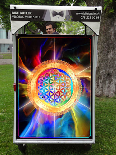 Geistig am Spannendsten ist natürlich Variante D. Ich könnte irgendwelche politische Statements oder philosophische Zitate aufdrucken um Betrachter zum Nachdenken zu animieren. Ich könnte provozieren, was vielleicht zu Medienpräsenz verhelfen würde (dafür braucht es ja nicht unbedingt gerade Mohammed-Karrikaturen). Da gäbe es wirklich einige Möglichkeiten... Oder, ich könnte auch einfach versuchen, die Rikscha möglichst schön zu gestalten um positive Emotionen zu wecken. Das finde ich eigentlich am Spannendsten. Der Versuch, ohne viel Worte und TamTam Positives zu bewirken. Ein schöner Gedanke... vielleicht sowas in der Art?