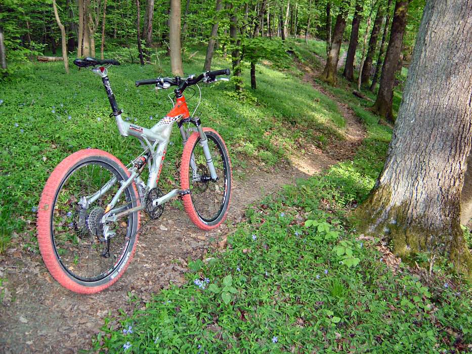 Damit es dann doch nicht nur ein rumhänge-Tag wird, entschloss ich mich gegen vier Uhr doch noch das schöne Wetter zu nutzen und eine Biketour zu fahren. Es war wirklich herrlich, ca. 20° Grad warm und die Abendsonne zauberte wunderschöne Farben und Stimmungen vor des Betrachters Auge. Die blühenden Wiesen Bäume und Sträucher sind wirklich wunderschön und auch die Singletrails im Wald verwandeln sich vom tristen braun-grau in grün gesäumte Spasstrails (siehe Foto). Der Tacho sagt: 41km, 2:39 Std., 1'020 Hm
