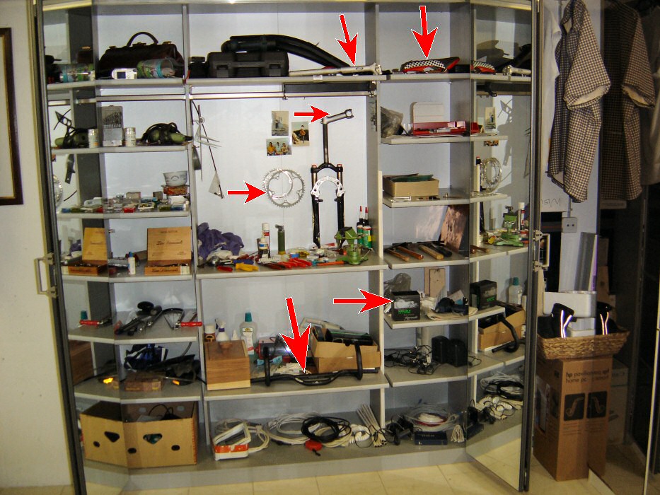 ... schon seit längerem die nicht mehr benötigten Biketeile welche sich in den letzten Jahren so angesammelt haben mal für Internet-Auktionen fotografieren, beschreiben, verpacken und mich nach dem Porto erkundigen. Es tummeln sich Vorbauten, Lenker, Sattelstützen, Sättel, Rennradbremsen, Ritzelpakete, Kettenblätter und diverser Kleinkram in meinem "Ersatzteilschrank". Wenn ich die Teile schon nicht selbst brauche, könnte ich sie immerhin verticken, so hätte auch jemand anderes etwas davon..... ja, ich weiss.... ich bin zu faul um nur schon Verpackungsmaterial zu suchen.... irgendwie drücke ich mich rum und denke, dass dann bestimmt noch ein Käufer reklamiert... dass das alles nur Umtriebe und womoglich noch Ärger bedeutet und dass die Teile im Schrank ja kein Heu fressen... alles Ausreden... was auch immer... ich denke nun schon seit über einem Monat: "Ja, das sollte ich tun!".... auch heute.