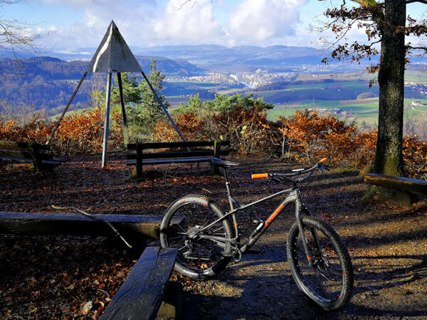 Die gewählte Strecke bin ich früher oft mit Freunden gefahren. Von zuhause nach Pfungen, von da hoch zum Irchelturm, weiter zur Hochwacht, runter zur Tössegg, hoch zum Rhinsberg und dem Hügelkamm entlang bis nach Eschenmosen. Weil ich genug Zeit hatte, fuhr ich runter ans Pistenende bei Oberglatt und genehmigte mir da noch einen Kaffee, bevor ich dann wieder nach Hause fuhr. Das GPS sagt: 49km, 3:21 Std., 1'100 Hm.