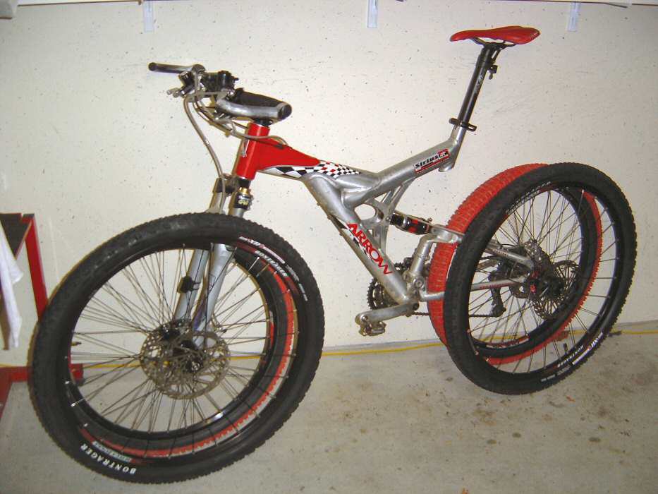 29er -> das wird für mich zum neuen Fachausdruck. 29-Zoll grosse Räder an Mountainbikes sind wirklich etwas Aussergewöhnliches. Ich bin sehr gespannt, wie sich das dann fährt. Um die Grössenunterschiede sichtbar zu machen, stellte ich die neuen Laufräder neben die 26-Zoll Räder am ARROW.![]()