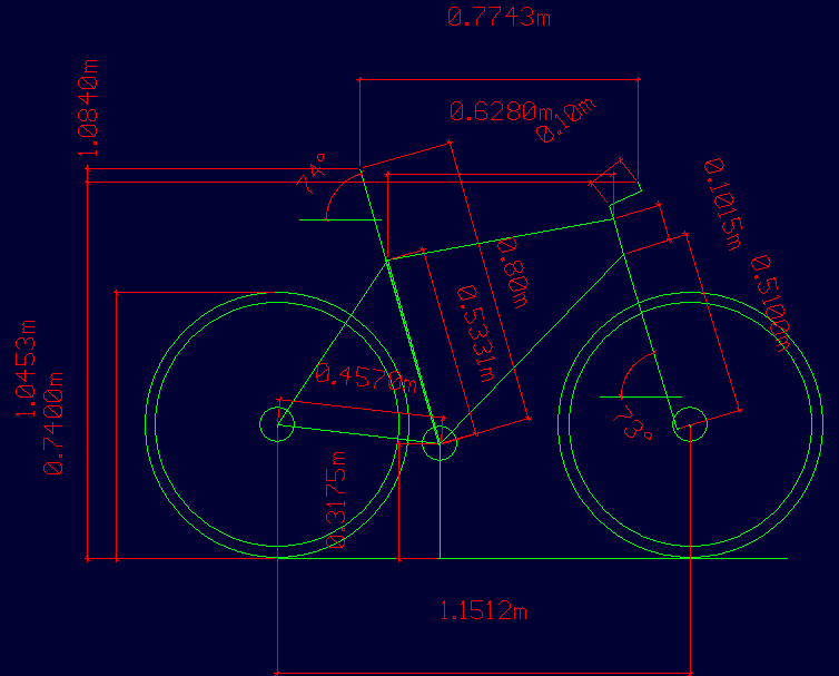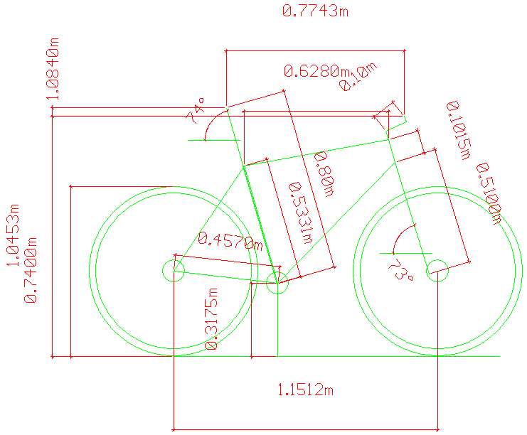 Wenn ich alles richtig gezeichnet habe, passt die Länge des neuen Bikes wirklich perfekt. 77,4 cm von Mitte Sattel, bis zur Lenkermitte, das kommt gut. Was mir auffällt ist die Höhe des Lenkers über Boden. Der Sattel wird nur etwa 4cm höher als der Lenker sein. Am ARROW sind das zwischen 8 und 10cm, je nach Federgabel- und Lenkereinstellung. Das erklärt Bilder die ich sah, an denen die Vorbauten anders herum montiert sind. Über den bestellten Lowriserlenker mit 25mm Erhöhung muss ich nochmals nachdenken. Ein gerader Lenker wäre vermutlich die bessere Wahl.