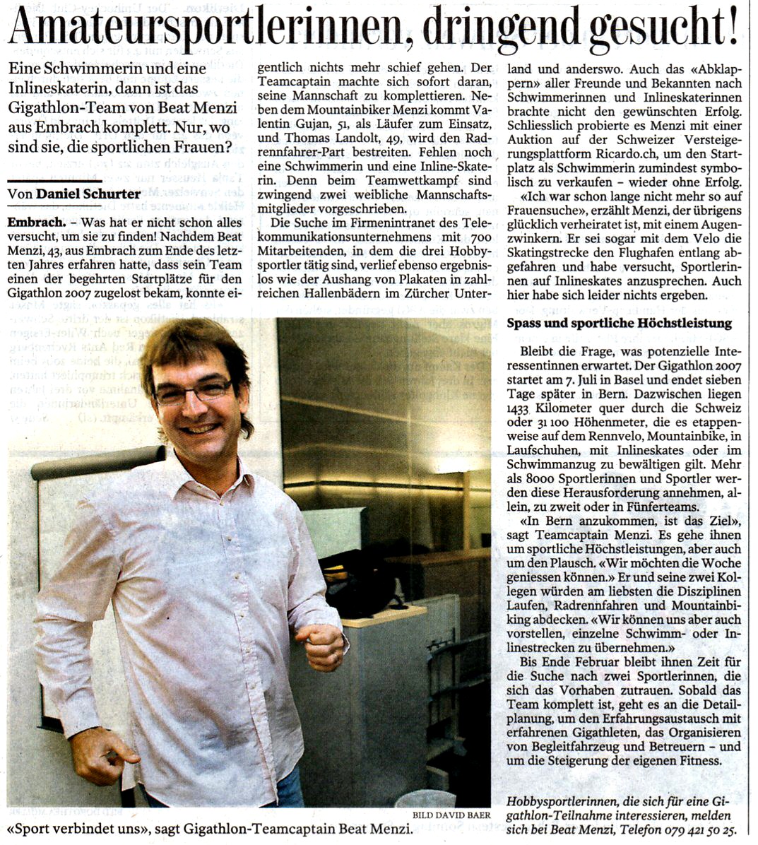 Auf Seite 50 der Regionalbeilage Zürcher Unterland ist heute dieser Artikel abgedruckt.