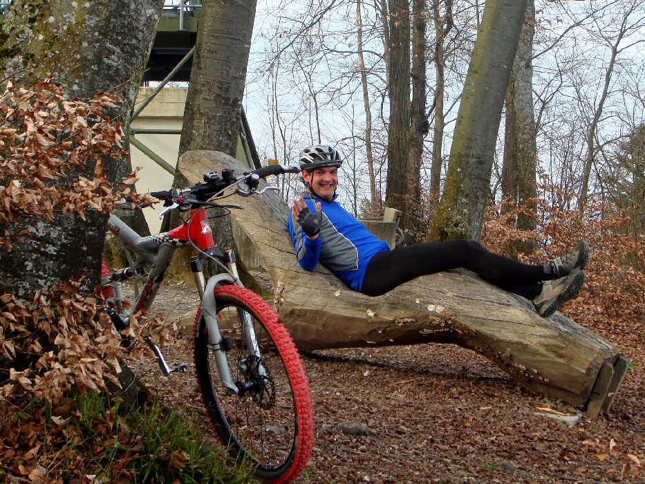 Nach etwas Hausarbeit konnte ich so gegen drei Uhr mittags endlich aufs ARROW-Mountainbike steigen. Die Vorfreude war gross und die Motivation auch, doch schon rasch fühlte ich mich eher matt und kraftlos. Komisch. So eine Woche nach Mallorca sollte ich doch ausgeruht und fit sein. Dass das Zürcher Unterland jedoch nicht Mallorca war, merkte ich schon bald. Ich war etwas zu leicht angezogen. Mein Bikecompuer zeigt nur knapp 10 Grad an und am Himmel verdeckten viele Schleierwolken immer wieder die Sonne. Zudem blies ein steifer Nordwind. Nicht das Richtige für meine dünnen Strumpfhosen. Auch am Oberkörper begann ich zu frieren, was ich aber mit einem Zusatztrikot aus dem Rucksack bekämpfen konnte.