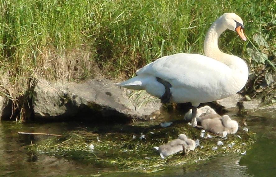 Auf dem Weg dahin fuhr ich der Glatt entlang und plötzlich sah ich auf der anderen Uferseite diesen Schwan mit 5 ganz jungen Kücken. Ich hielt an, zückte die Kamera und zoomte so gut wie möglich ran. Die Schwanenfamilie war mindestens 20 Meter entfernt. Mit dem Ergebnis bin ich sehr zufrieden (endlich mal wieder ein gutes Bild). Die Reisegeschwindigkeit des Fahrradfahrens ist einfach ideal. Man sieht mehr und hat den grösseren Aktionsradius als zu Fuss und man ist doch so langsam, dass man noch genügend Zeit hat um die Landschaft, das Wetter, die Natur und alles drum herum wahrzunehmen. Mit dem Motorrad oder dem Auto sieht man so etwas nicht oder zumindest viel weniger.