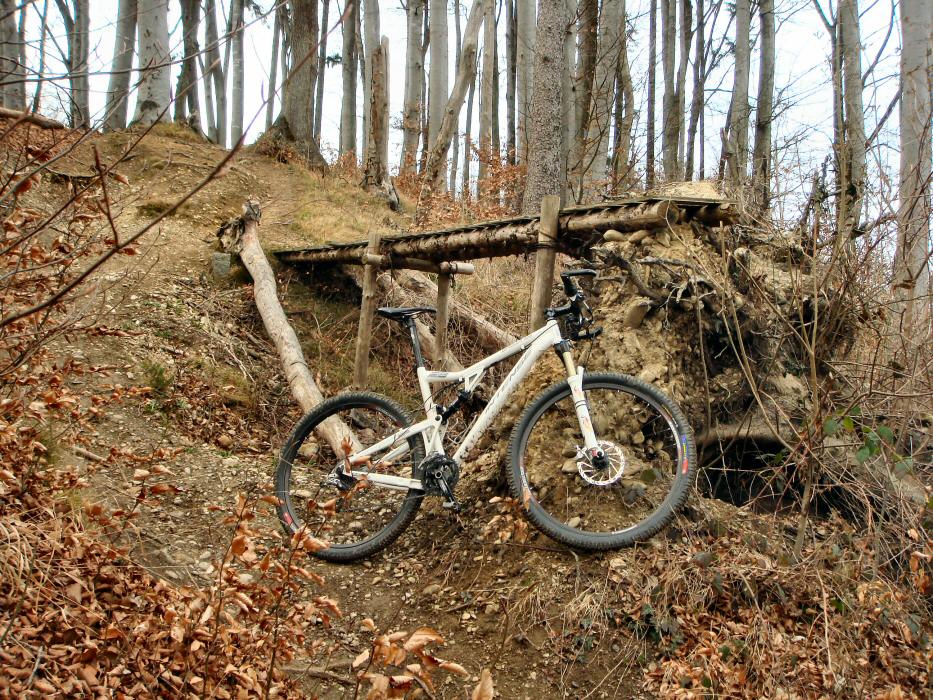 Ich wollte wieder einmal den "Northshore-Downhill" runter nach Dättlikon fahren. Den höchsten Drop habe ich fotografiert. Da möchte ich mal einen runterspringen sehen. Das ist bestimmt über 1,5 Meter hoch und die Landung dürfte auch nicht ganz leicht sein, denn es folgen sogleich weitere Bäume und Wurzeln. Nicht schlecht! Auch der weitere Streckenverlauf ist recht heftig. Es folgen überhöhte Anlieger, Sprünge, Wallrides, jede Menge Mutprüfungen... (die ich mehrheitlich auslasse und umfahre)... da haben einige Jungs viel Arbeit in den Streckenbau investiert. Cool. Da würde ich wirklich gerne mal ein paar Typen mit 200mm Federweg-Bikes in Fullspeed runterbrettern sehen.