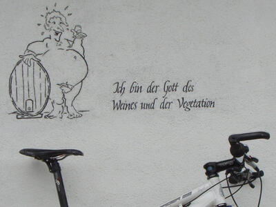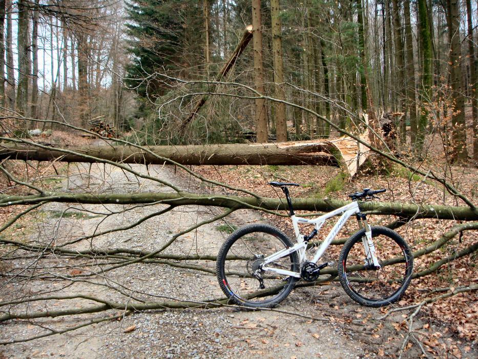 Dass es die letzten Tage sehr stürmisch war, war leicht zu erkennen. Ich musste auf meiner heutigen Bikerunde dreimal absteigen und über umgestürtzte Bäume klettern. Auf vielen Forststrassen lagen abgebrochene Äste und so ganz wohl war es mir heute zeitweise nicht. Auf dem Lägerngrat wehte auch heute der Wind teilweise sehr stürmisch und die Bäume beugten sich dem Druck und der Kraft. Zum Glück hatte ich den Gnomen rechts mit dabei, den "Gott des Weines und der Vegetation"