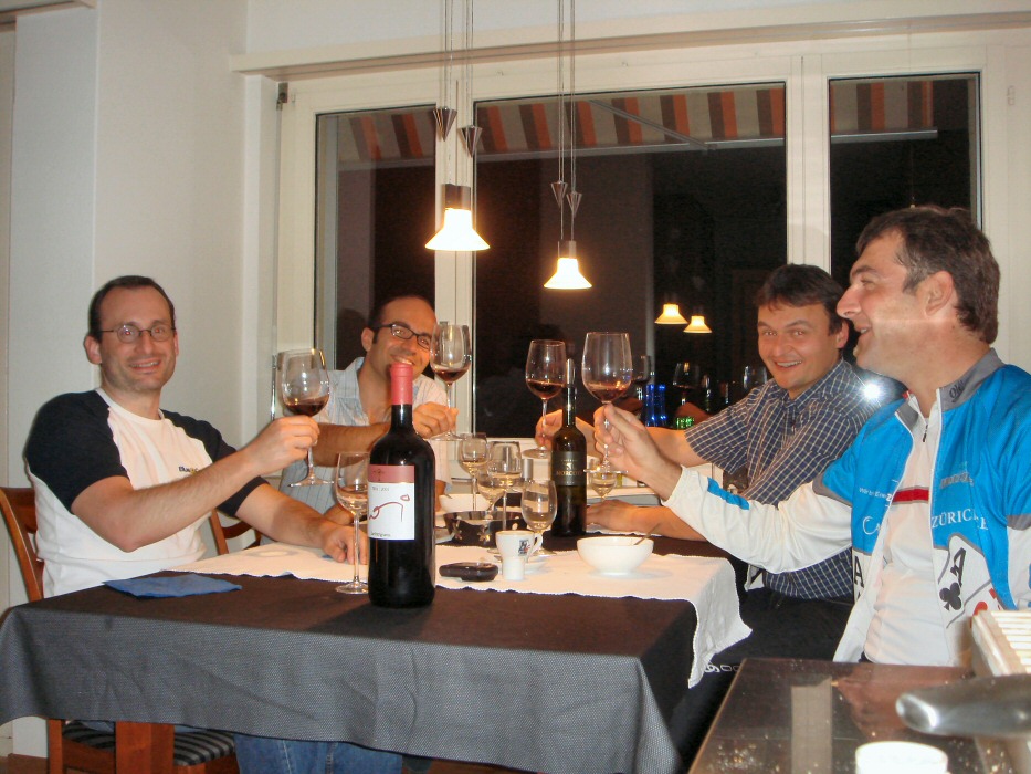 Das Treffen bei Peter war dann sehr anregend, gerade auch, weil wir vier so unterschiedlich sind. So hatte natürlich jeder etwas zu erzählen und man konnte sich dabei etwas kennenlernen. Schön. Die Spaghetti schmeckten ausgezeichnet und der Morcote-Wein passte hervorragend dazu. Zum Dessert noch etwas Eis, einen Espresso, alles, was das Herz begehrt.