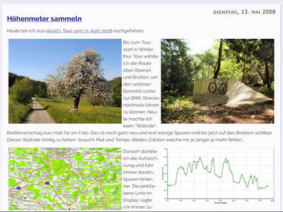 Die Übung mit den Regenkleidern musste ich dann kurz nach Biberbrugg nochmals durchziehen. Wieder regnete es zwar kurz aber heftig. Diesmal beschloss ich unter einem Vordach Schutz zu suchen und zu warten, bis der gröbste Schauer vorbei ist. Kaum zehn Minuten später konnte ich dann weiterfahren und ich freute mich, schon bald zurück beim Auto zu sein. So langsam spürte ich ein Ziehen in den Kniekehlen und die Beine wurden auch zunehmend müde. Als ich beim Auto dann die Tourdaten angesehen habe, war alles wie geplant. Mein GPS zeigte bis auf ein paar wenige Meter genau die selbe Streckenlänge und Höhendifferenz an, die der Track auf gpsies.com angegeben hatte. Das GPS sagt: 86 km., 4:08 Std., 1'400 Hm.