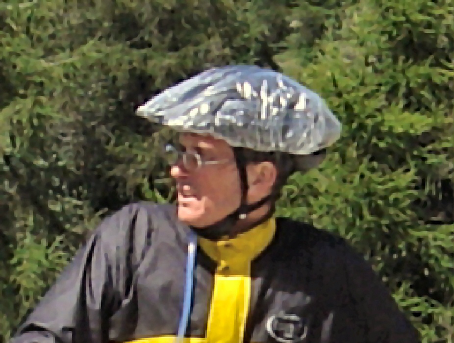 Die zweite Anwendung kommt bei anhaltendem Regen zur Anwendung. Dabei spannt man die Duschhaube so gut es geht über den Helm, damit der Regen nicht direkt über die Lufteinlässe auf den Kopf trifft. Das macht längere Regenfahrten deutlich erträglicher.